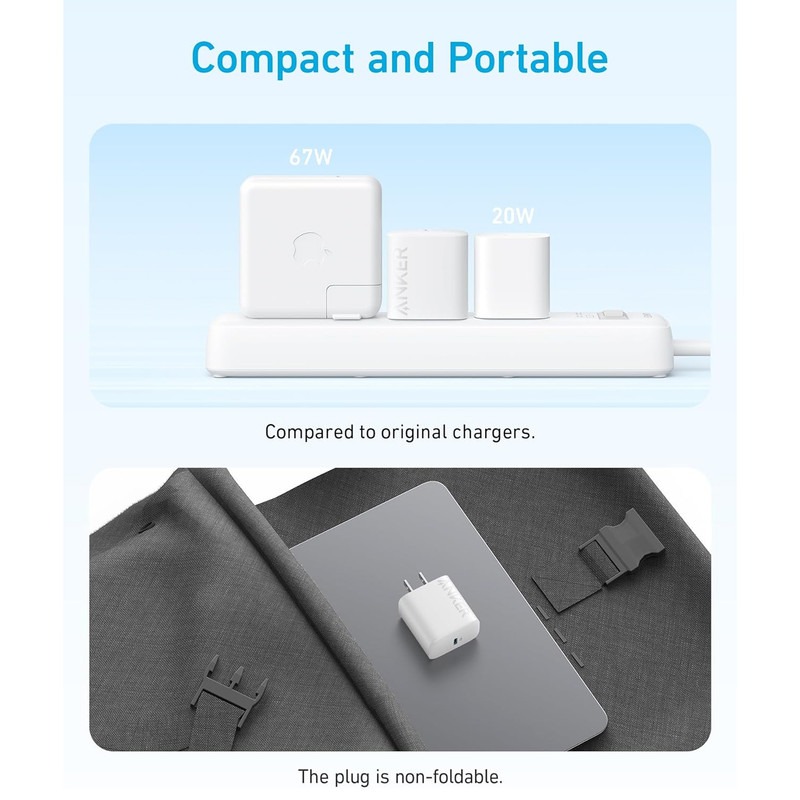 این شارژر به لطف فناوری Power Delivery (PD) میتونه تو مدت کوتاهی دستگاههای شما رو شارژ کنه؛ به عنوان مثال آیفون 13 تنها در ۳۰ دقیقه از صفر تا ۵۰ درصد شارژ میشه. طراحی کوچیک و جمعوجور این مدل به شما اجازه میده اون رو به راحتی تو کیف یا حتی جیب قرار بدید و همیشه همراه داشته باشیدش.